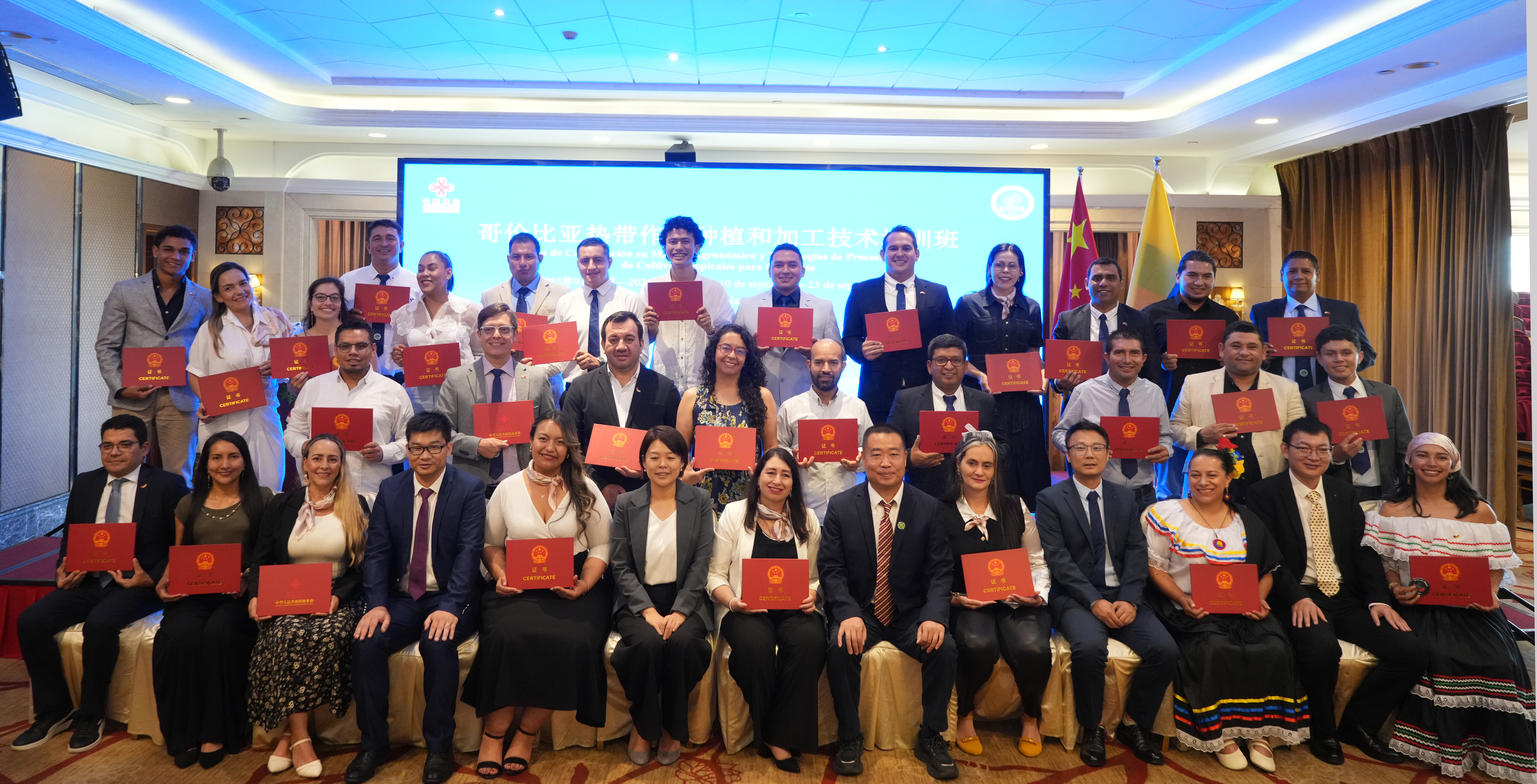 9月23日,由商务部主办、中国热科院承办的“哥伦比亚热带作物种植和加工技术培训班”在江西南昌圆满落幕,来自哥伦比亚从事热带作物种植和加工领域工作的31名学员顺利完成培训。中国热科院南亚所副所长楚小强、南昌大学国际食品创新研究院副院长黄小林、南昌大学国际食品创新研究院副院长陈婷婷出席结业典礼并为参训学员颁发结业证书。