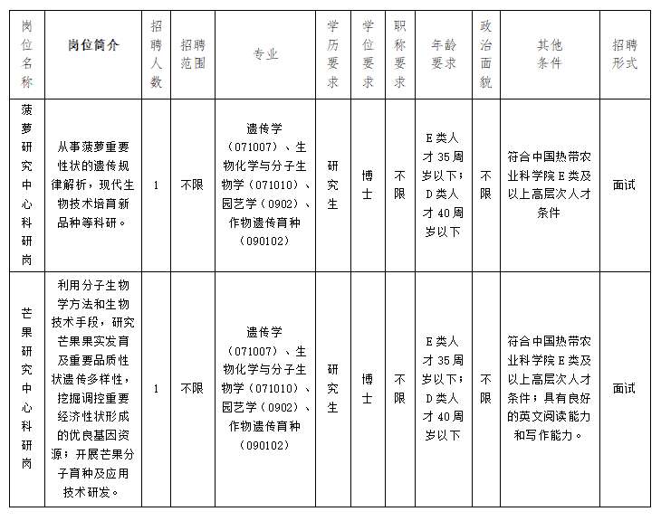 其余事项与2022年11月4日发布的《中国热带农业科学院南亚热带作物研究所2023年博士研究生人员公开招聘公告》一致。